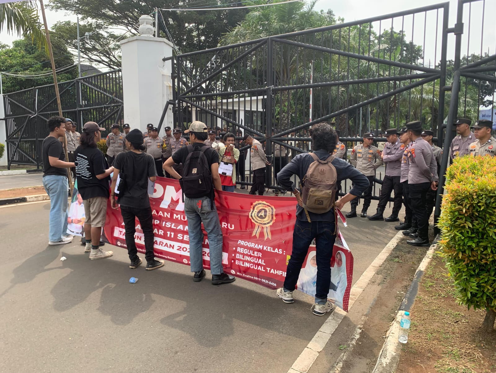 Serang,fesbukbantennews.com (23/4/2026) – Sekelompok mahasiswa yang tergabung dalam Komunitas Soedirman 30 (KMS 30) menggelar aksi unjukrasa di depan Kawasan Pusat Pemerintahan Provinsi Banten (KP3B), Kamis (23/04/2026). Mereka menyoroti paradoks kemiskinan dan ketimpangan wilayah di Provinsi Banten.Aksi KMS 30 di depan KP3B,Kamis ,23 April 2026.