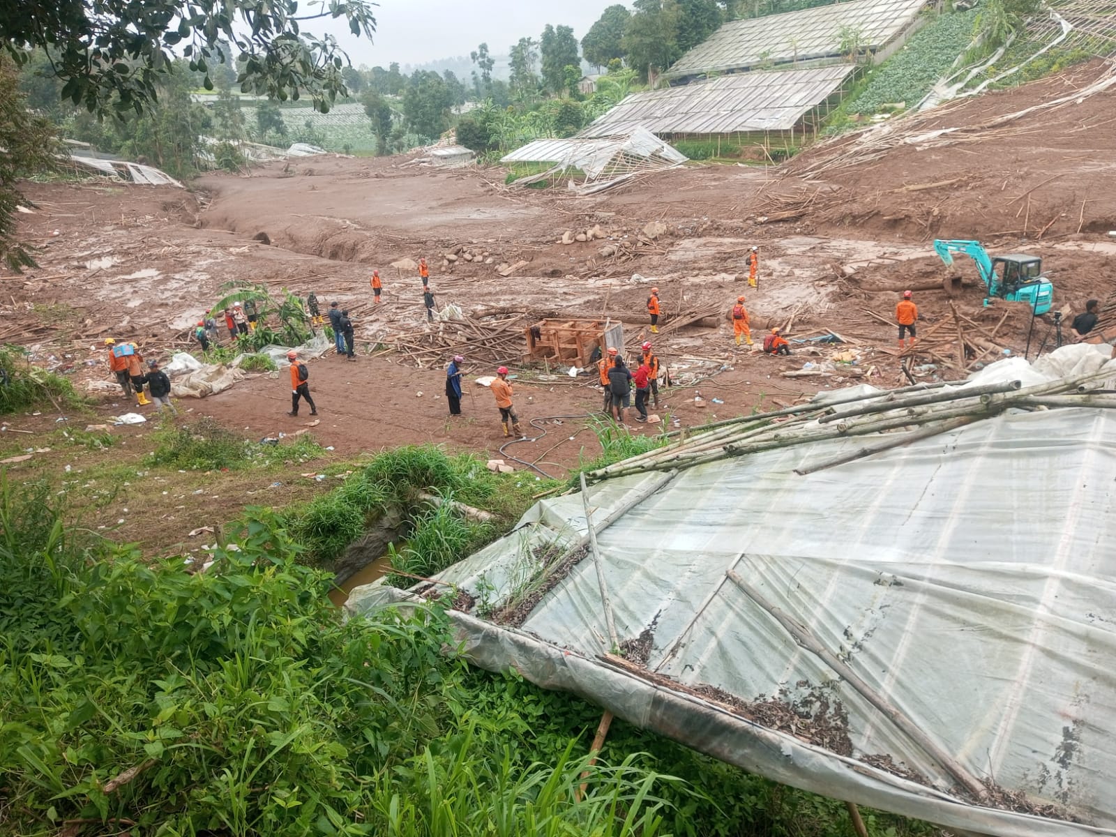 Proses evakuasi di lapangan masih berlangsung dengan mengandalkan alat berat dan kerja manual relawan serta petugas. Kondisi medan yang labil dan tertutup material longsoran membuat proses pencarian korban membutuhkan waktu dan kehati-hatian ekstra.